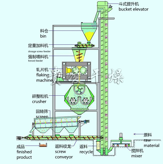 對粉狀物進行壓縮成片, 再經過破碎、 整粒、 篩分工藝, 使片塊狀物料變成符合使用要求的顆粒狀物料